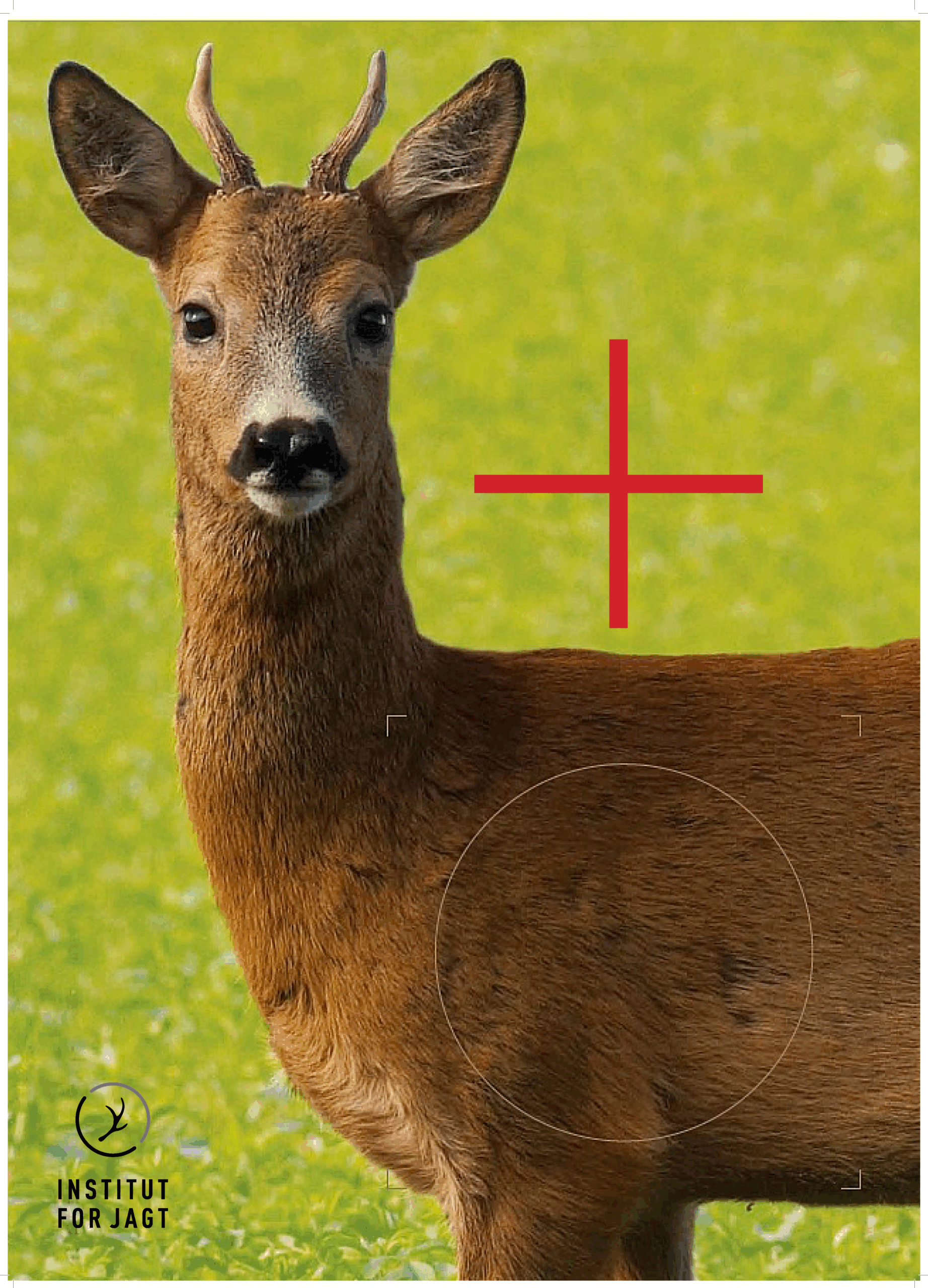 Bukkeskydeskive der kan bruges til riffelprøven med indskydningskryds.