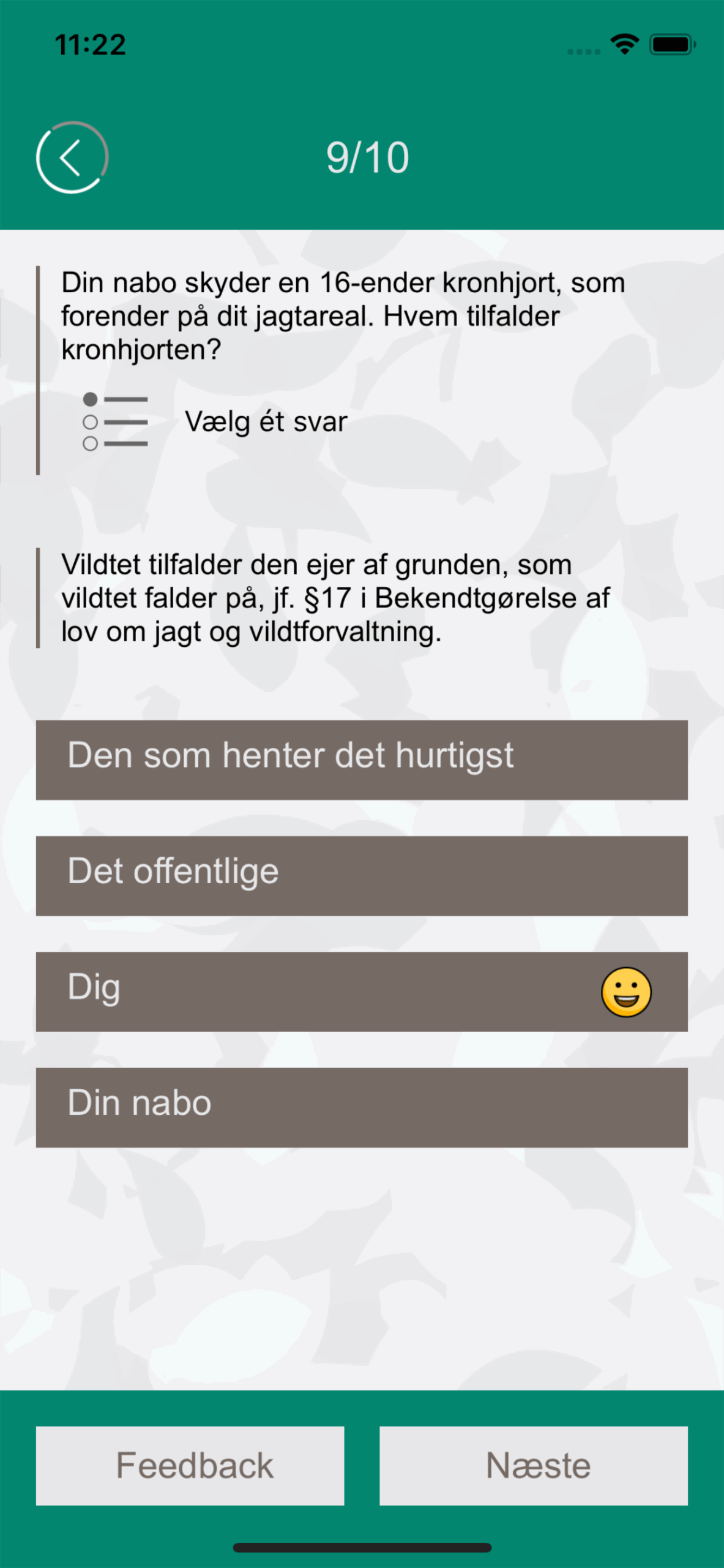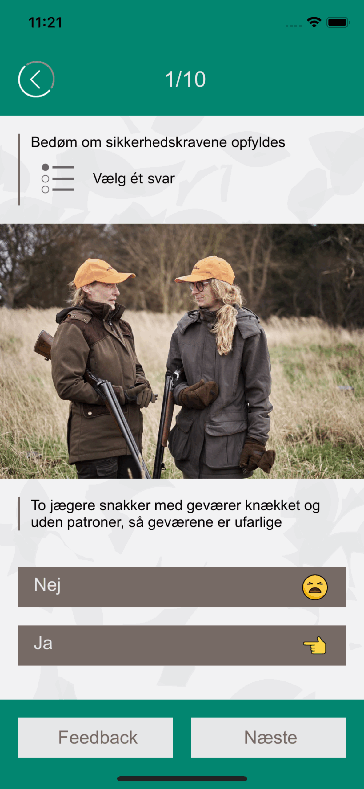 Prøven til jagttegnet kan være svær. Derfor har vi lavet en app, som gør dig klar til jagtprøven. Spørgsmålene minder om dem, som du vil møde. Bestem selv om du vil tage en hel prøve med 40 spørgsmål eller indenfor kategorierne. Med 3.000 spørgsmål er der uendeligt mange prøver. Og app’en viser endda, hvor du kan blive lidt bedre.